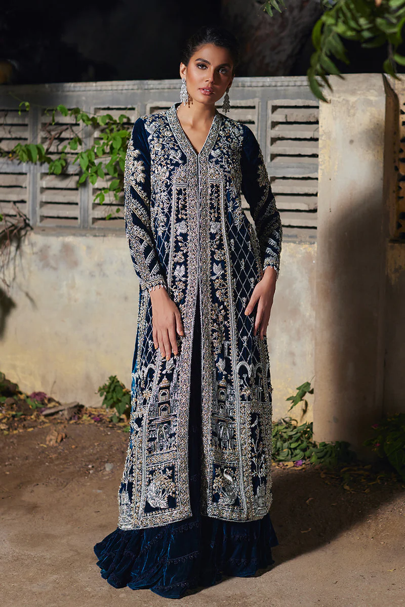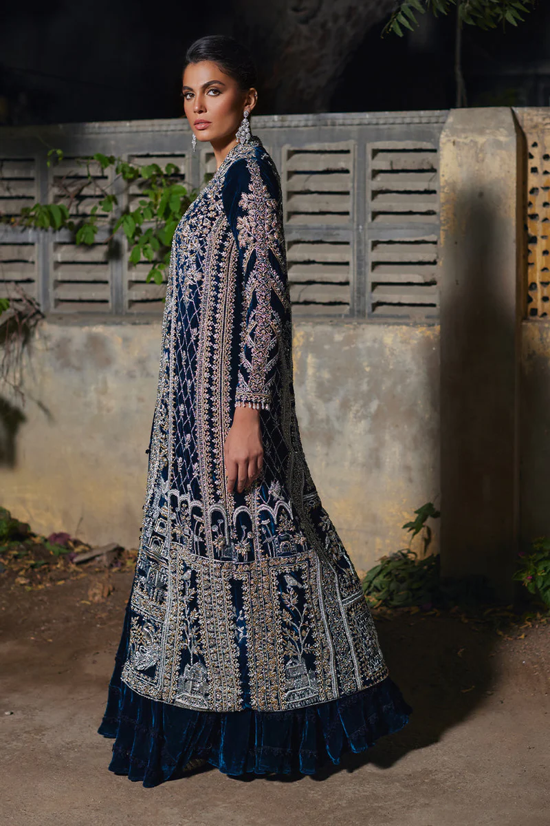 Investing in pure velvet is more than a fashion statement; it is a celebration of timeless beauty. Velvet’s opulent feel and luxurious aesthetic make it the ideal choice for those aiming to stand out. Every detail of this front open gown and lehenga has been meticulously crafted to ensure comfort without compromising grandeur.